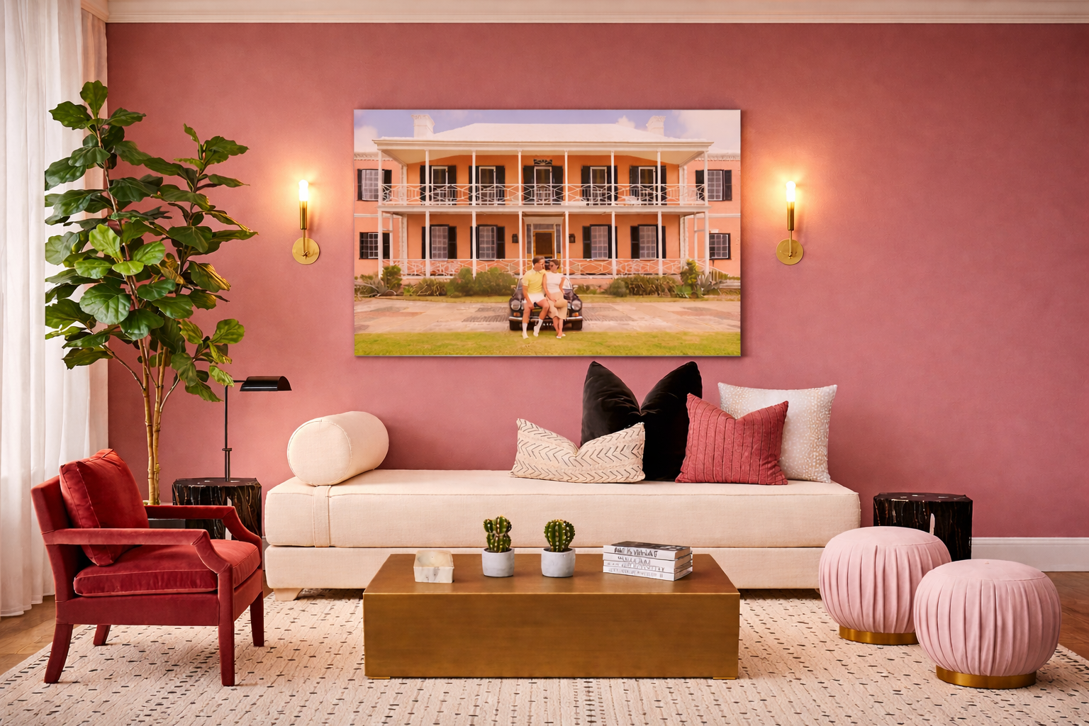 Pink lime wash walls